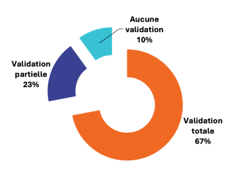 90% des candidats obtiennent une validation totale ou partielle.